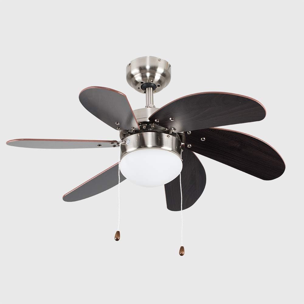 Plafonnier Ventilateur Worcester En Metal Et Bois Wenge Keria , Ventilateur De Plafond Aneto Avec Lumière Et Moteur Dc.