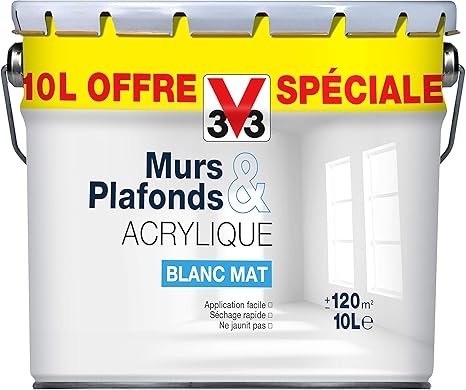 V33 114342 Peinture Murs Et Plafonds Acrylique Blanc Mat 10l Amazon Fr Bricolage - Comment Bien Repeindre Un Plafond Sans Trace ?